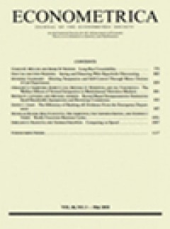《Econometrica》雜志創(chuàng)刊于1933年,由Wiley-Blackwell Publishing Ltd出版商出版,出版周期為Bimonthly,國際簡稱為ECONOMETRICA,中文名稱計(jì)量經(jīng)濟(jì)學(xué)。該雜志旨在及時(shí)、準(zhǔn)確、全面地報(bào)道國內(nèi)外社會(huì)科學(xué)-數(shù)學(xué)跨學(xué)科應(yīng)用領(lǐng)域取得的最新研究成果、工作進(jìn)展及學(xué)術(shù)動(dòng)態(tài)、技術(shù)革新等,促進(jìn)學(xué)術(shù)交流,鼓勵(lì)學(xué)術(shù)創(chuàng)新。